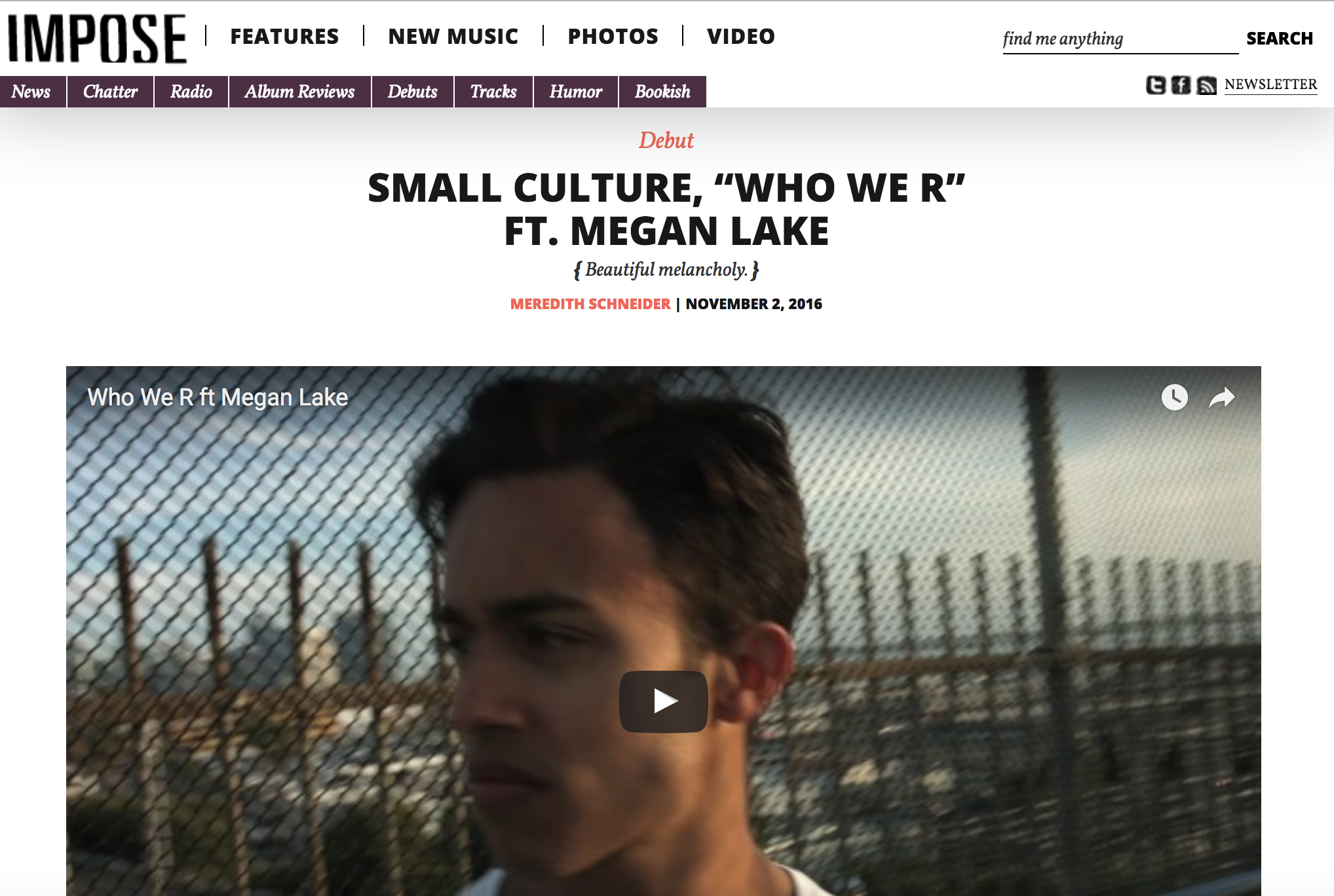 San Diego's indie project Small Culture, led by songwriter Jerick Centino, has premiered there video "Who We R" with the online tastemaker publication: Impose Magazine. Press release crafted and pitched by Sassafras Mgmt.