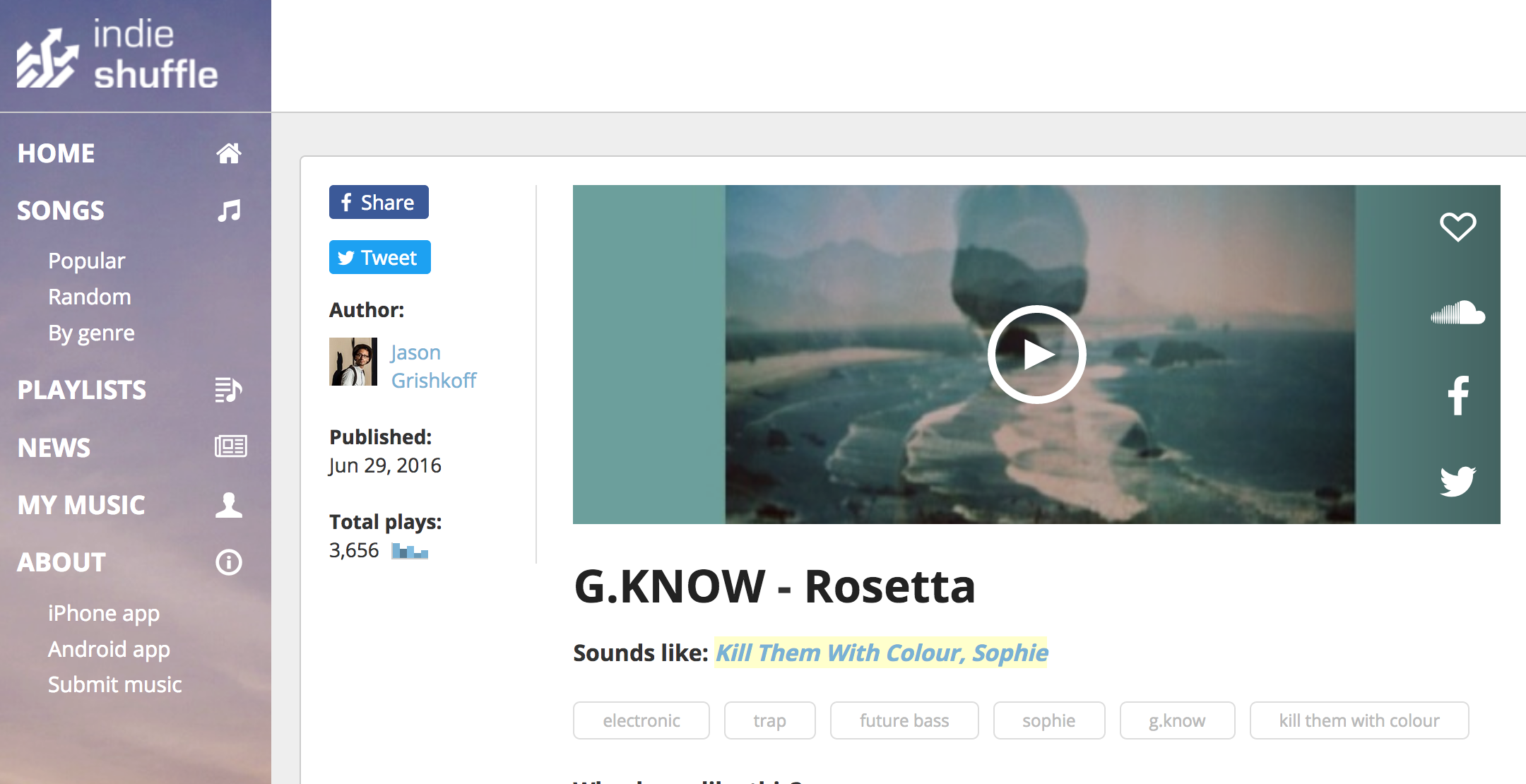 Emotional Bass producer, G. Know, featured on the cutting edge playlist website: Indie Shuffle. The producer's single "Rosetta" was released early this year and has gathered over 70,000 plays on Soundcloud as well as coverage on numerous other music blogs